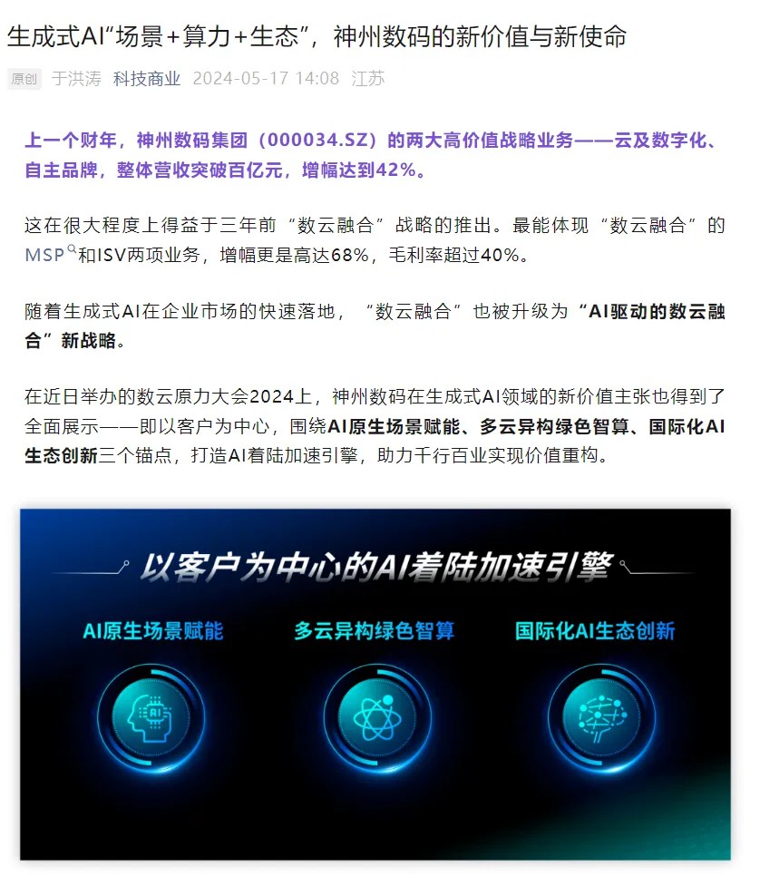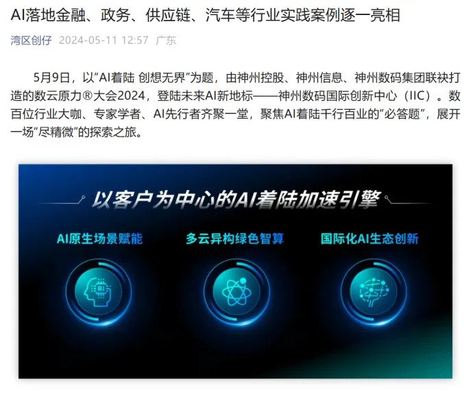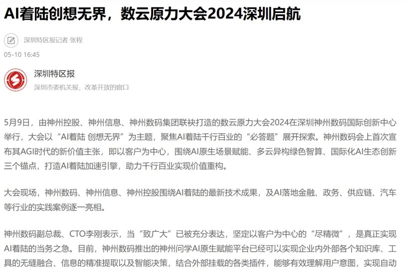 近日,由神州控股、神州信息、350vip浦京集团集团联袂打造的年度盛会——数云原力大会2024开幕式,在未来AI新地标——350vip浦京集团国际创新中心(IIC)圆满落幕。这场以“AI着陆 创想无界”为主题的活动,不仅引起了业界的广泛关注和讨论,也引发了媒体的争相报道。