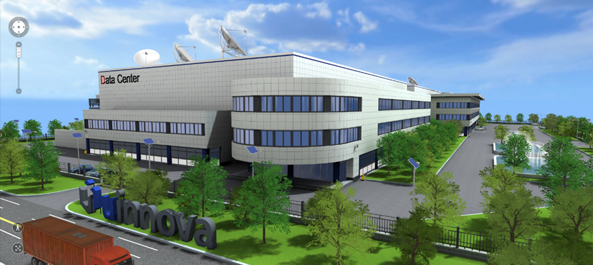 多个数据中心、楼宇在同一个平面上展示。楼宇内部结构的虚拟仿真,根据楼宇实际建筑结构3D建模